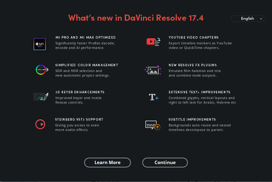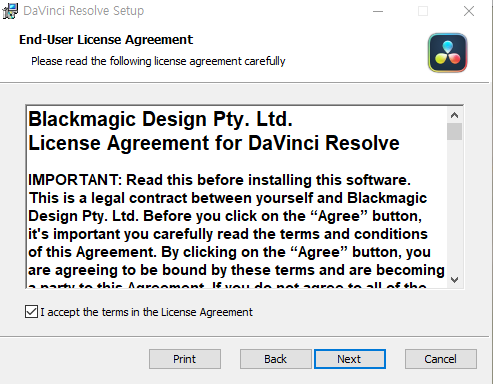 다빈치 리졸브는 아쉽게도 한글을 지원하지 않습니다. 그래서 영어로 설치를 진행하시면 됩니다.