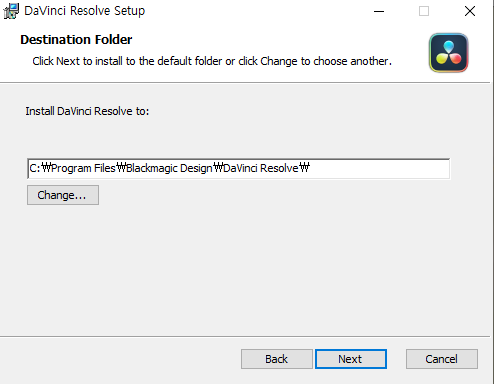 위 화면을 마지막으로 다빈치 리졸브 설치가 완료됩니다.