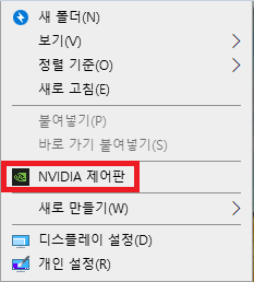 - 바탕화면에서 마우스 우클릭 -> NVIDIA 제어판 진입