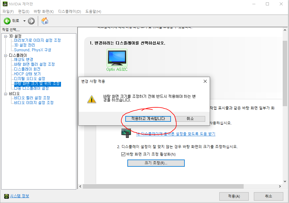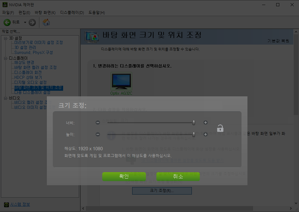 - NVIDIA 제어판에서 해상도 변경